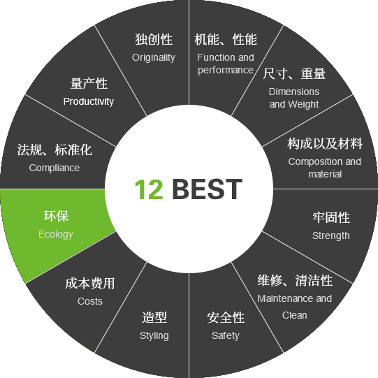 產量 法規 環保 成本 造型 安全性 維修 牢固 構成 尺寸 機能 獨創